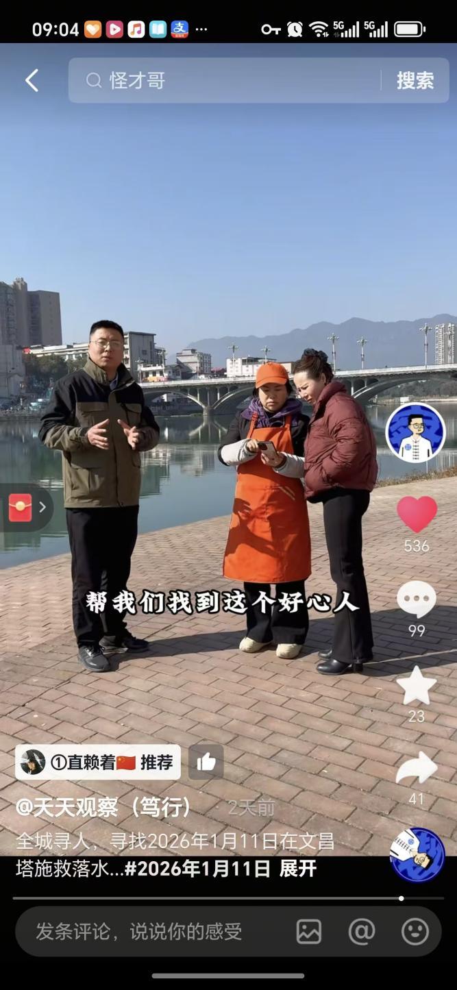 可就是这样一个视频,在网上瞬间得到大家呼应,纷纷转发。一时间,全城都在找“帅哥”。开粉面店的花姐是个热心肠,她的店子就在孩子当时落水点不远处,眼见这几日刘阿姨经常到她店里来打探救人帅哥消息。花姐便提出也帮忙一起找人。