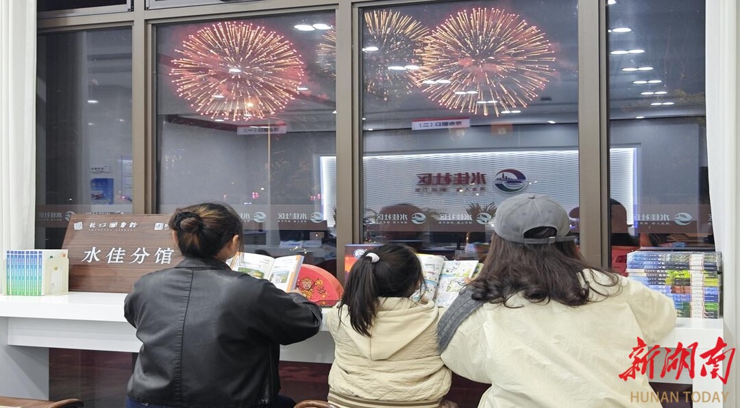 水佳分馆以“烟花分馆”为主题,在水佳分馆不仅可以阅读,还可以近距离观看“天空剧院”的浏阳烟花秀,让各位读者闹中取静,享受阅读与烟花的双重乐趣。