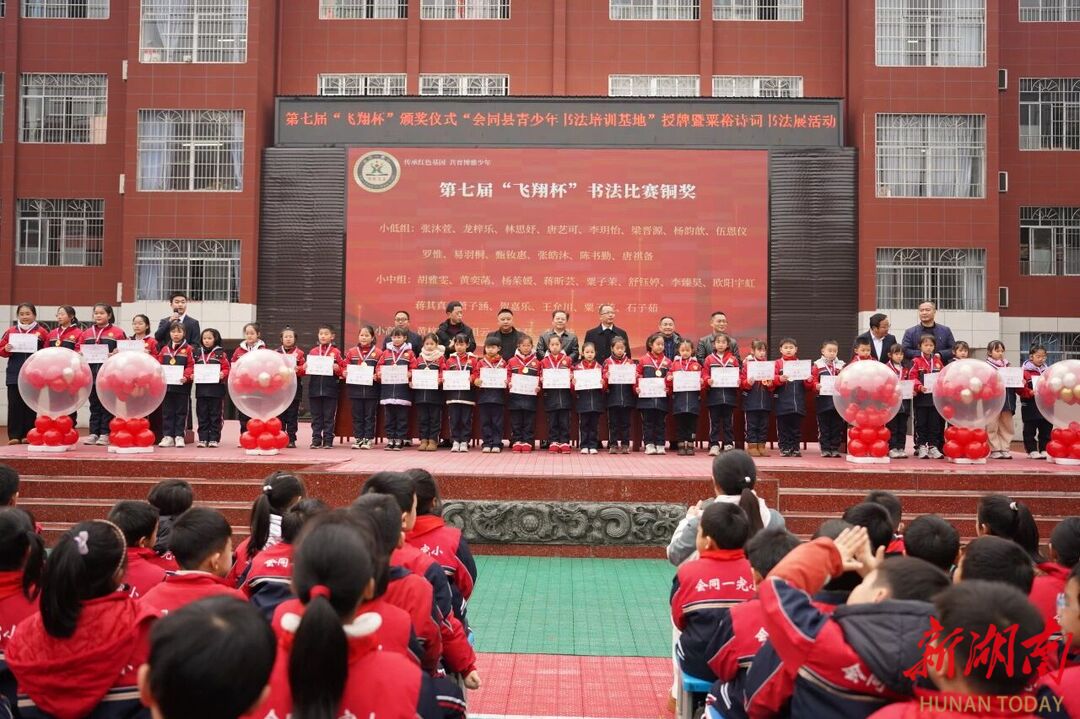 湖南日报·新湖南客户端1月16日讯(通讯员 张子平)墨香溢校园,笔韵传薪火。1月16日上午,怀化市会同第一完全小学3000余名师生齐聚校园,共同见证该校第七届“飞翔杯”书法大赛颁奖仪式暨会同县青少年书法培训基地授牌仪式。