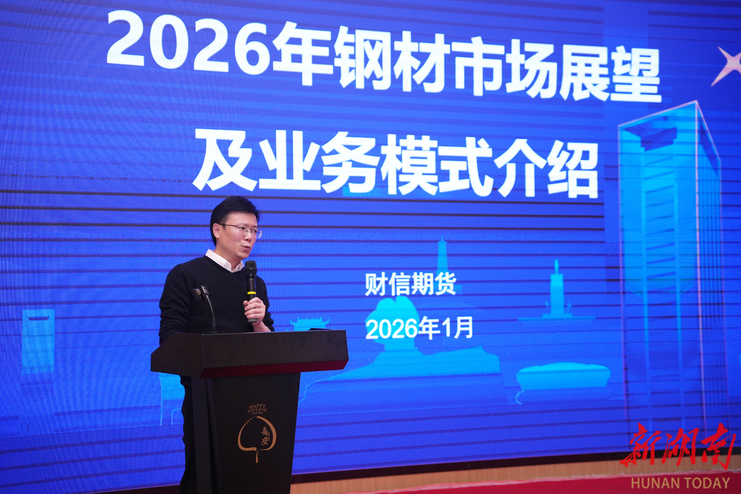 湖南日报·新湖南客户端1月16日讯(通讯员 刘祎)1月12日,湖南省钢铁供应链协会卷板分会2026新春年会在长沙召开,省内卷板产业链企业代表齐聚,共话行业发展机遇与挑战。作为年会特别支持单位,财信期货深度参与,其研发服务中心负责人苏斌发表专题报告,以精准的市场研判与实用的风险管理方案,为湖南本地钢铁上下游企业提供金融赋能,彰显了公司深耕产业、服务实体经济的实力与担当。
