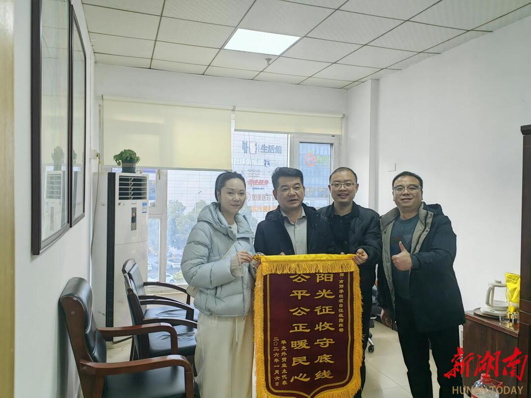 湖南日报·新湖南客户端1月16日讯(记者 彭诗思 通讯员 安立 唐燕飞)锦旗轻,情意重。近日,一面印着“阳光征收守底线 公平公正暖人心”的锦旗,被几位拆迁居民郑重地送到了长沙市天心区裕南街街道南郊学校项目征收指挥部,映衬着他们脸上的灿烂笑容。