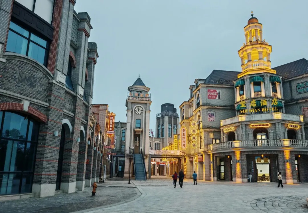 来到铜官竖店短剧影视城,民国风情街市与赛博朋克空间仅一墙之隔,未来实验室与复古咖啡馆毗邻而居,同一个空间从正门看像是“警局”、从侧门看又是“民政局”……一栋楼就是一个“影视魔盒”,每数十平方米便承载一个完整的叙事空间。