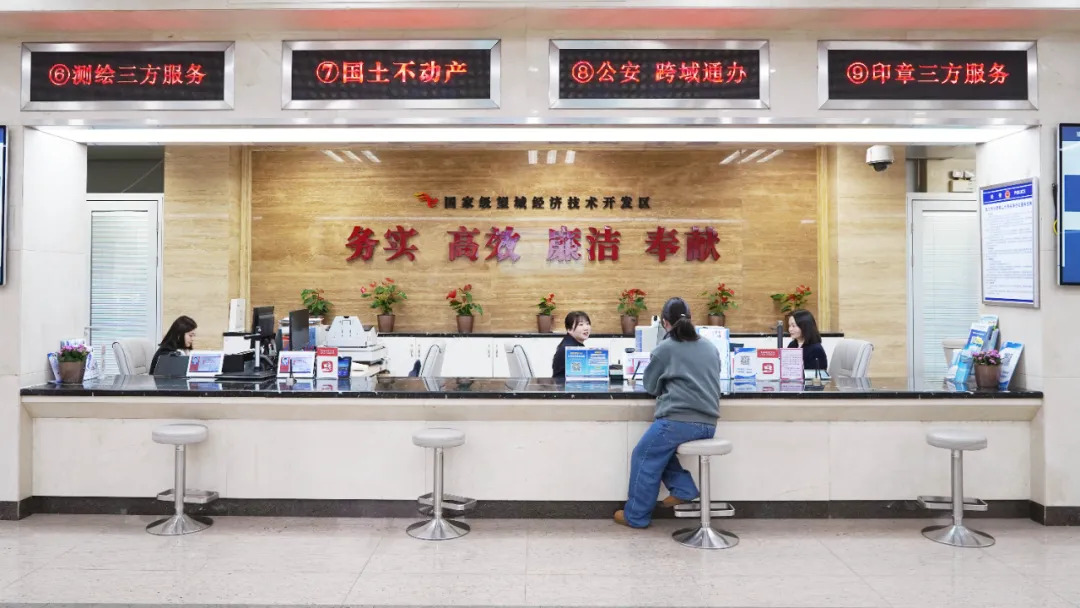 ▲在望城经开区政务服务中心,工作人员为企业办理业务。