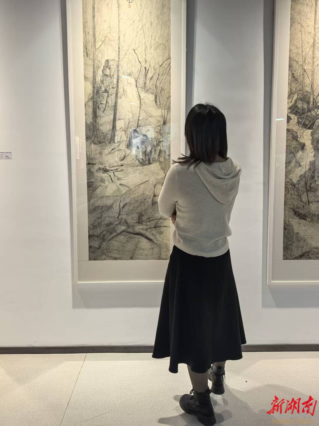 对于记者这种非专业观众而言,“月光宝盒”展提供了一个贴近当代艺术的亲切入口。展览中不少作品以自然山水、抽象肌理为题材,在黑白节奏间传递出宁静深远的气息,足以吸引人驻足细品。