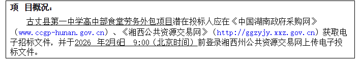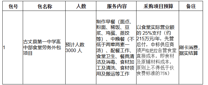 1.采购项目名称:古丈县第一中学高中部食堂劳务外包项目