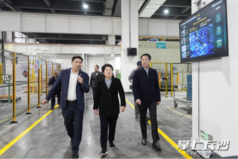 Wu Guiying visits the Hisense (Changsha) Home Appliance Industrial Park during her inspection tour.