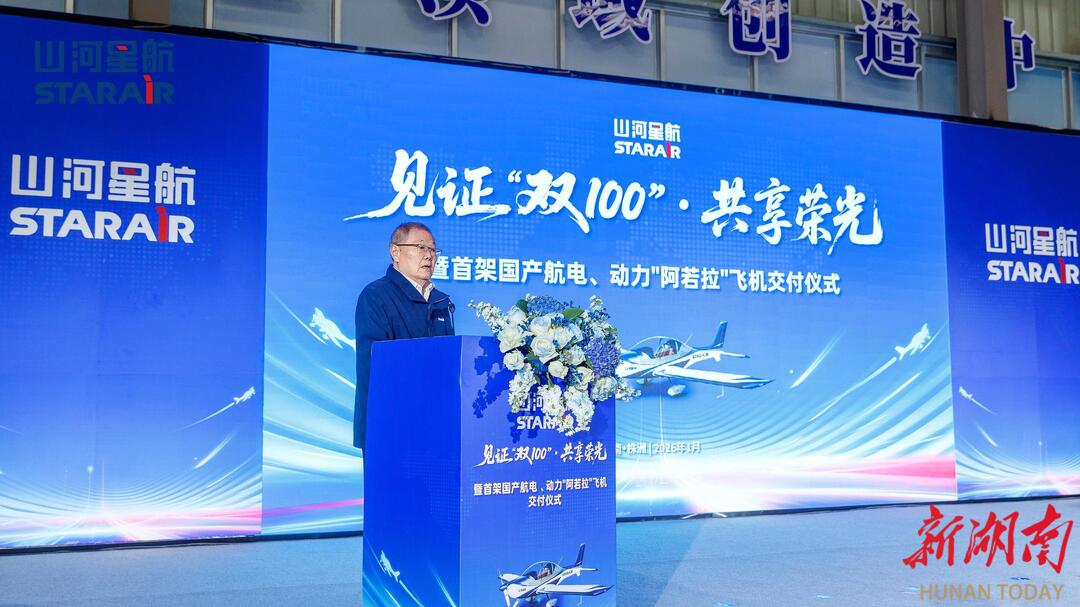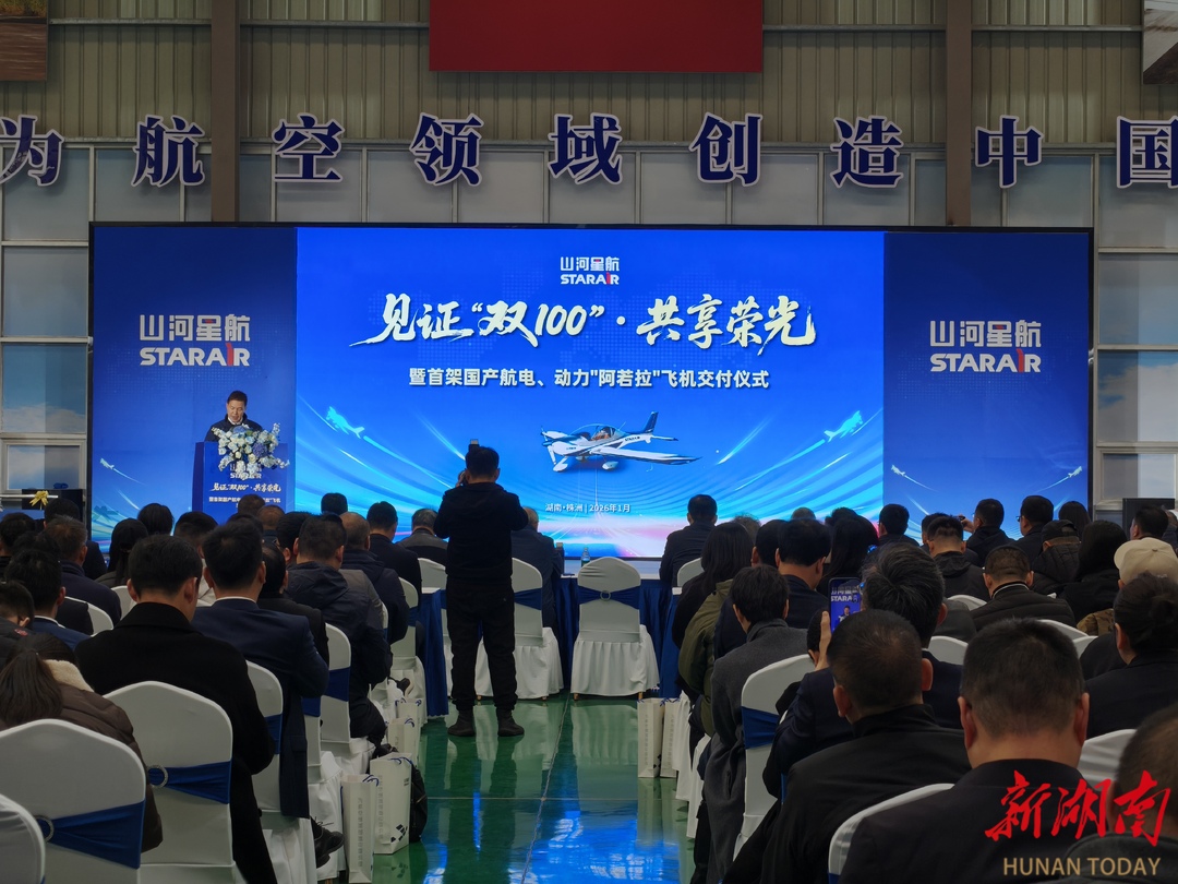 湖南日报·新湖南客户端1月16日讯(记者 张永琼 通讯员 刘鹏飞)1月16日,山河星航实业股份有限公司首款搭载国产动力和航电系统的阿若拉飞机在株洲市芦淞区交付。株洲市委副书记、市长陈恢清出席。