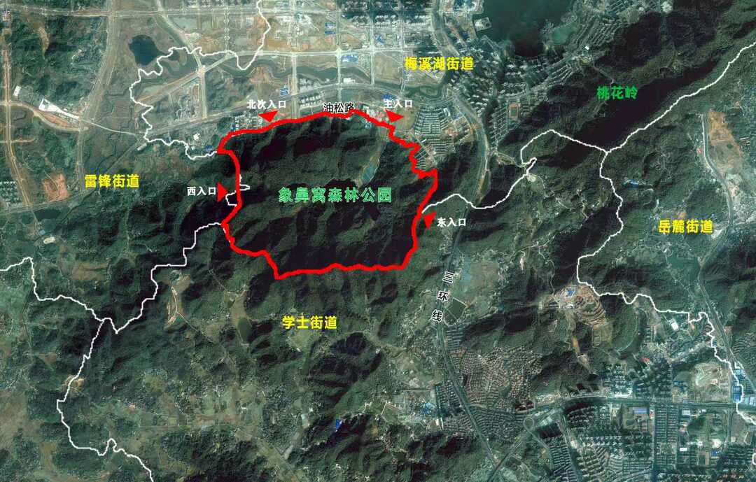 “暂未开放,山脊线不安全”——位于湖南湘江新区梅溪湖国际新城二期的象鼻窝省级森林公园,北门喇叭循环播报着安全提示。