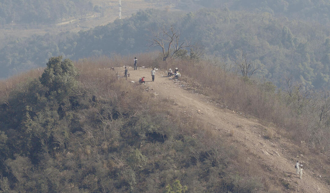 1月15日,记者实地探访发现,游客热衷攀爬的山脊线陡坡,实则是公园的森林防火隔离带,仅用于阻隔火灾蔓延,并无任何防护设施。