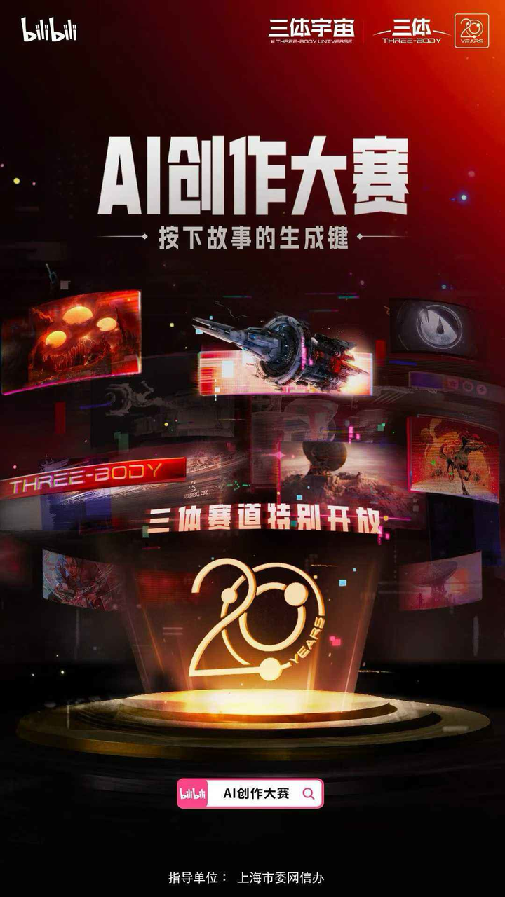 为庆祝《三体》20周年,三体宇宙还联合哔哩哔哩(B站)开放了“AI创作大赛”三体赛道。作为《三体》二创内容的核心阵地,B站拥有深厚的科幻社区土壤,曾诞生过诸多《三体》相关解析、速读等内容。此次大赛设立百万奖金池,旨在鼓励创作者基于《三体》世界观及规定命题,利用AI工具对原著中留白的空间进行拓展与复现。