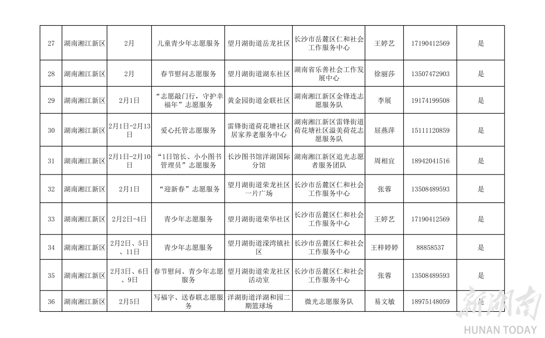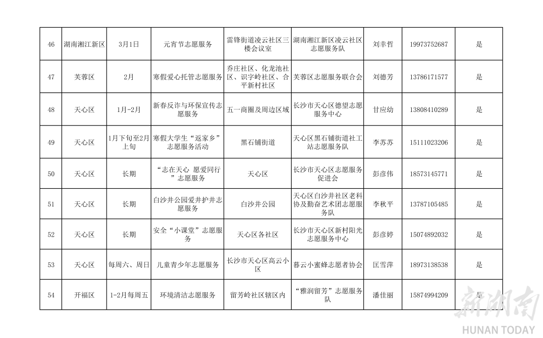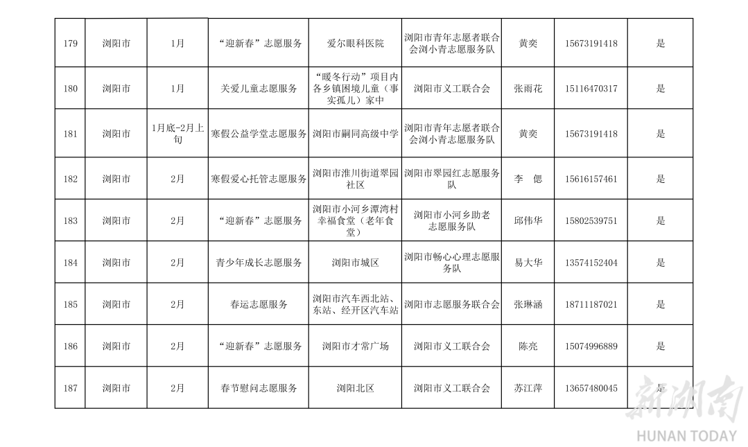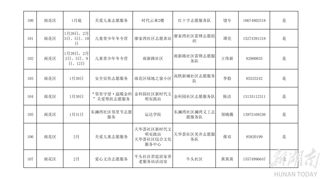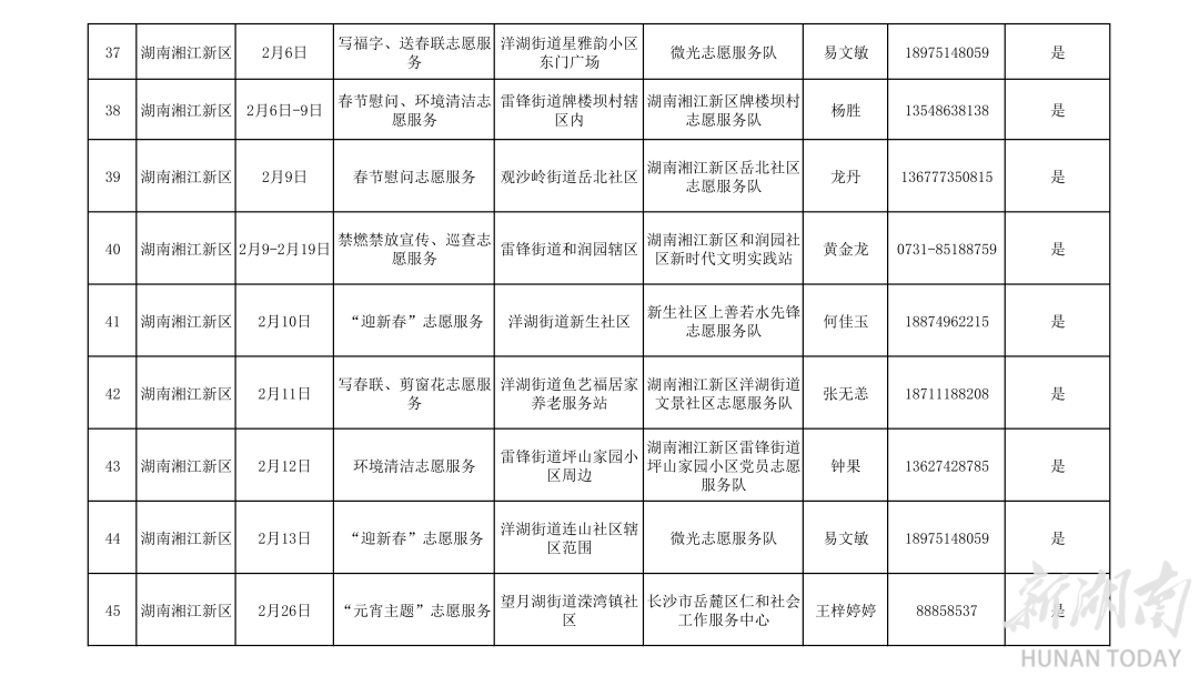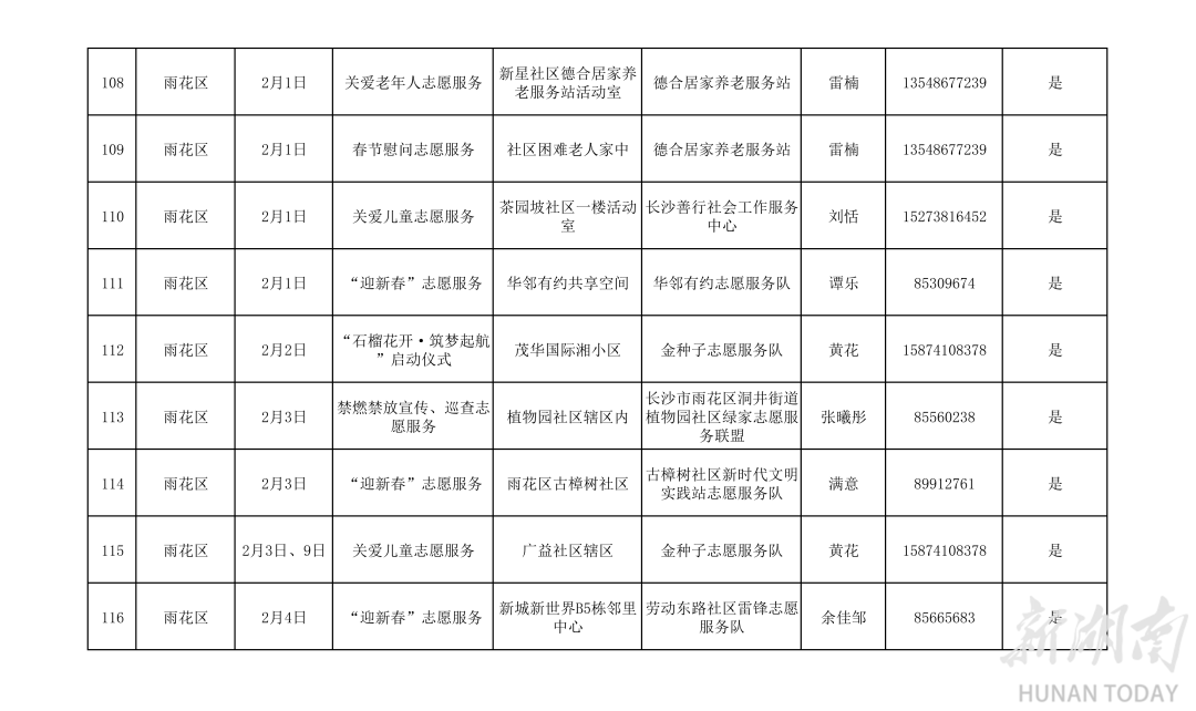 据相关负责人介绍,本次征集活动得到了全市相关单位、组织的积极响应,包括地质灾害和森林火灾隐患排查、春运志愿服务、文明旅游宣传、环境清洁、关爱老年人和困难群体、儿童青少年冬令营等。记者了解到,这些志愿服务岗位涵盖长沙市6区1县2市,既有面向高校学生的实践岗位,也有适合社区居民参与的便民服务项目。有意参与的市民可通过以下表格查询具体岗位信息并报名。
