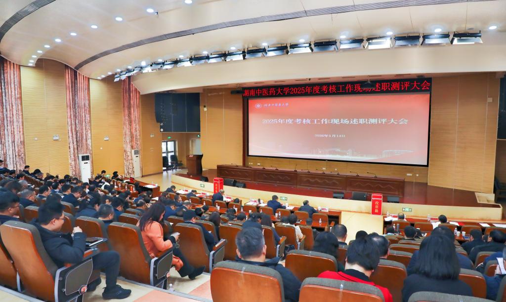 1月14日,湖南中医药大学举行2025年度考核工作现场述职测评大会,校党委书记戴爱国集中点评并总结讲话。大会分为二级目标管理考核述职测评和二级党组织书记抓基层党建工作述职测评两个阶段进行,分别由校长易刚强、党委副书记汤文胜主持。全体在家校领导参加会议。