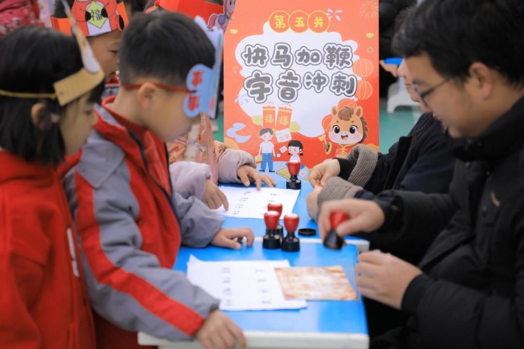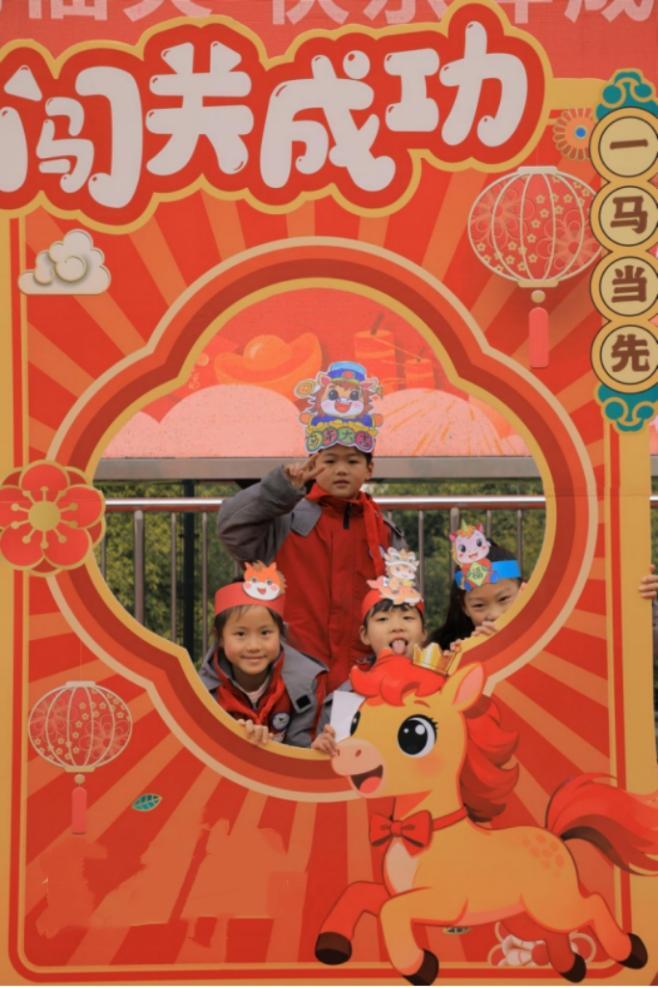 活动现场,小同学们头戴美术课堂上制作的马年主题头饰,手持“闯关卡”活力闯关,在欢乐中检验知识、提升能力。