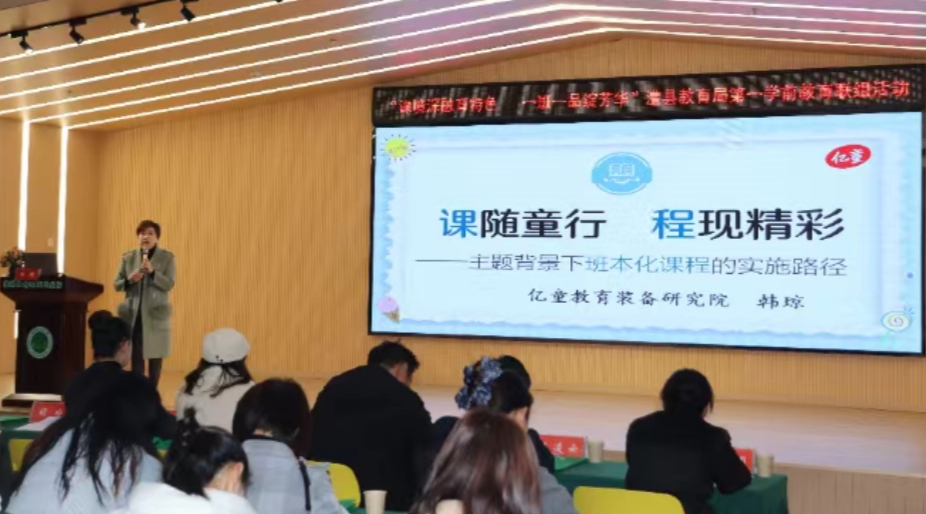 澧县锦绣翊武幼儿园园长夏丽春在致辞中表达了对联组共建、资源共享、协同发展的期待。在专家讲座环节,邀请亿童研究装备研究院副院长韩琼,以“课随童行 程现精彩——主题背景下班本化课程的实施路径”为主题,围绕班本化课程的实施路径展开深入浅出的讲解,从理论层面为教师们厘清班本课程构建思路,从实践角度指明环境创设与课程融合的方向,为教师们提供了专业引领与思路启发。在专家讲座后,老师们走进班级开展现场观摩,直观感受班本课程与班级环境创设的深度融合,体会到“一班一品”的课程特色与环境魅力。