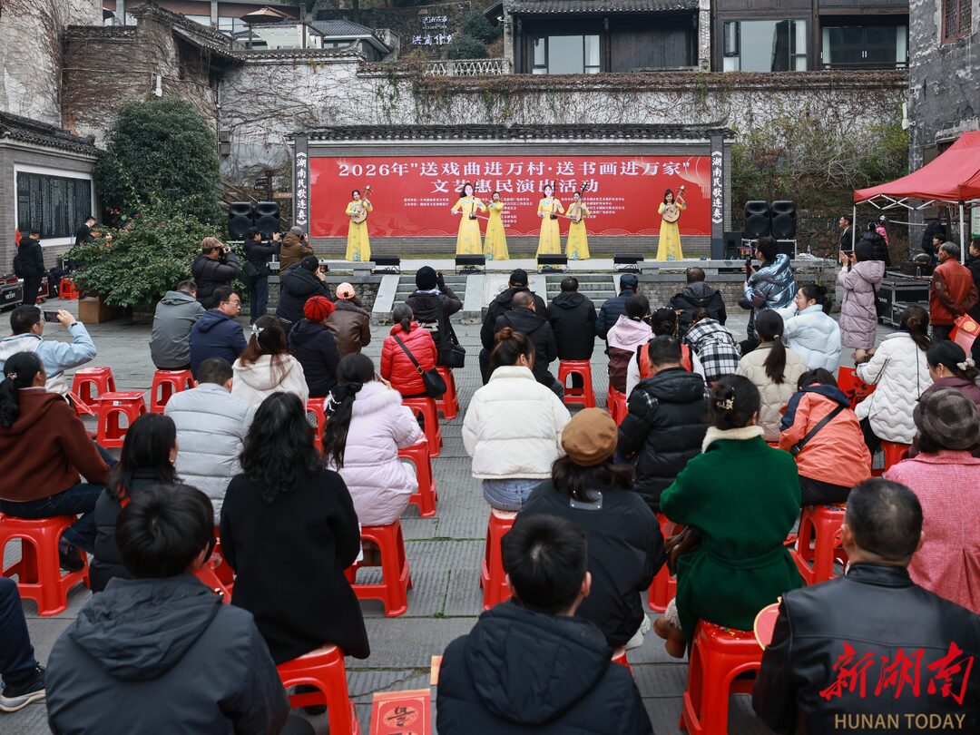 湖南日报·新湖南客户端1月16日讯(通讯员 黄建平)1月16日,怀化洪江古商城留园内乐声悠扬,翰墨飘香。2026年湖南省“送戏曲进万村•送书画进万家”下基层文艺惠民活动在洪江古商城留园热闹启幕,来自湖南省湘剧院及省直院团的艺术家们将湖湘文化的精粹,送到了百姓的家门口。