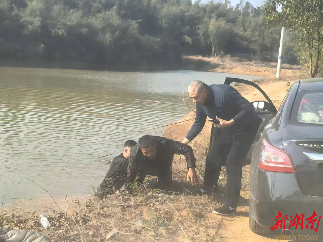 “当时只听见‘救命’的喊声,循声望去就看见有人在水里扑腾,水虽然不算深,但水流有点急,他已经快没力气了。”汤博奥向记者讲述起事发瞬间,彼时他正驾车途经赫山区泉交河镇一处深水塘,呼救声穿透寒风传来,在职业本能的影响下,他立刻让司机停车。