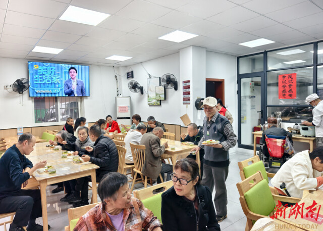 芋头蒸肉、油豆腐烧肉、手撕包菜、莲藕花生汤……1月13日中午,长沙市粟塘小区内的“新聚园社区老年食堂”,一群老年人正在用餐,餐桌上热气腾腾的菜品香气扑鼻。在这里,60岁以上老人花10元就能吃到三菜一汤的美味佳肴,社区还为腿脚不便的老人免费送餐上门。