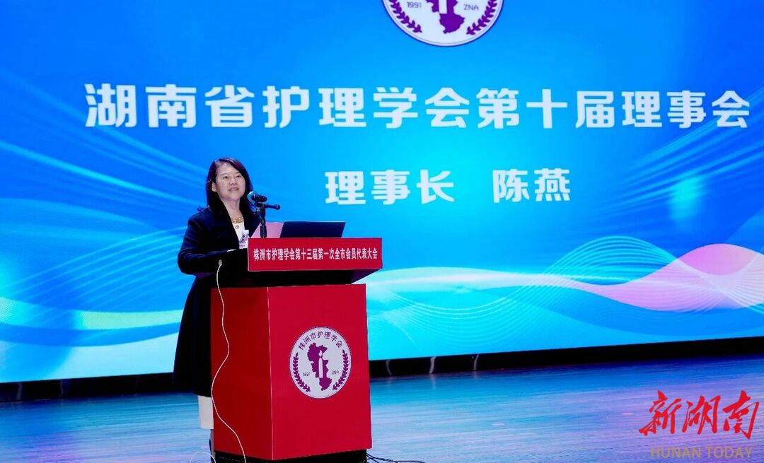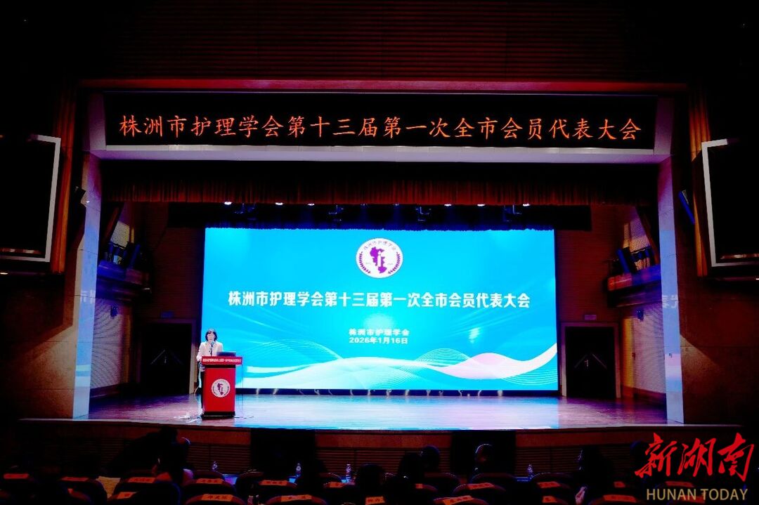 1月16日,株洲市护理学会第十三届第一次全市会员代表大会在株洲市中心医院学术报告厅顺利举行,换届选举的预备会议已于2026年1月15日顺利召开。本次大会以“承前启后,开拓创新,共绘护理事业新篇章”为主题,并顺利完成学会理事会及党支部换届选举。湖南省护理学会理事长陈燕;株洲市卫生健康委员会党委委员、副主任(兼)疾控局局长谢文博;株洲市中心医院党委书记刘建军,党委副书记、院长陈迅,党委委员、工会主席王莉;市民政局、市科协、市卫健委等相关单位负责人及全市护理代表共同参会。