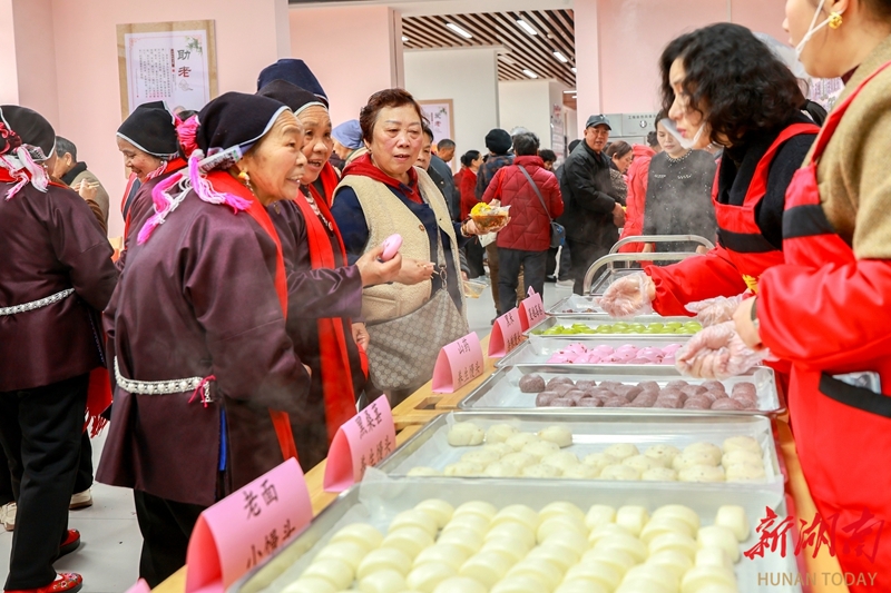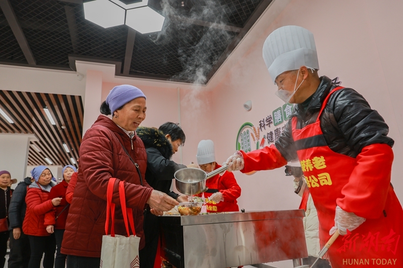 1月16日,通道侗族自治县双江镇城北社区春江赋居家养老中心,老人们有序排队选餐。近年来,该县通过建设社区养老助餐点,让老年人就近享受实惠可口的餐食服务。石猛雷 摄(湖南图片库)