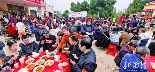 湖南日报·新湖南客户端1月17日讯(通讯员 何兴安 何泱浒)杀猪宴的“风”,吹到了湘乡市的山坳。1月16日,湘乡市栗山镇界头村的一家农庄里格外热闹,数千名食客循着年味儿奔赴而来,共赴一场热气腾腾的“年猪宴”。与此同时,直播间里的数万名网友同步围观,在屏幕前回味记忆里的儿时年味。