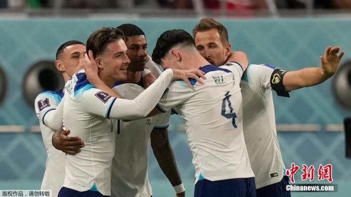 卡塔尔世界杯上英格兰队球员一起庆祝。