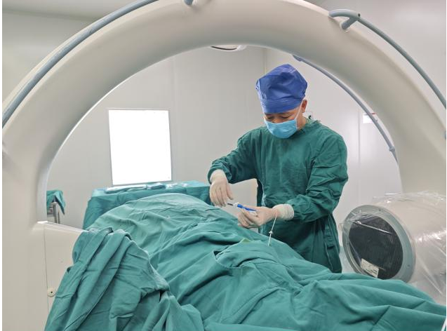 接诊后,麻醉疼痛科伍应健医生团队对周阿姨的病情进行了详细评估。考虑到患者疼痛剧烈、药物治疗效果有限且严重影响生活质量,团队决定为其施行目前先进的微创介入技术——经皮穿刺三叉神经半月节球囊压迫术。