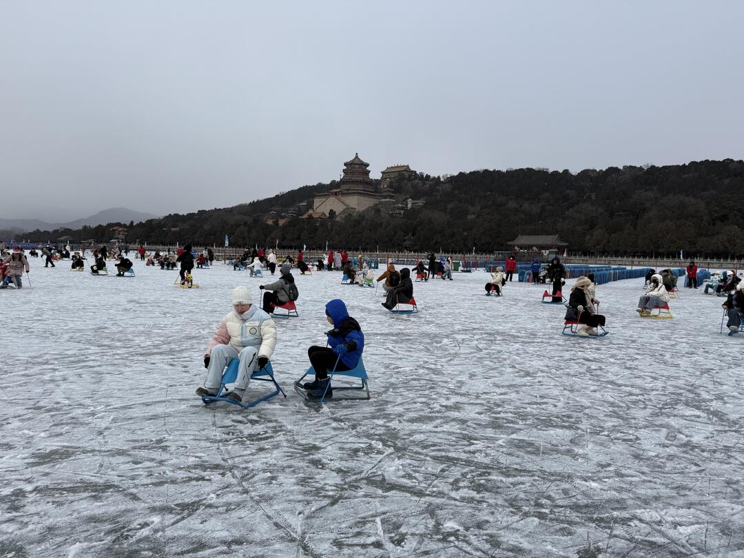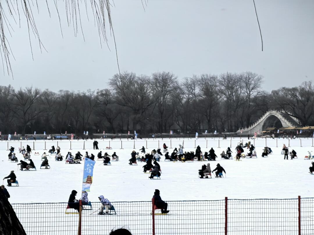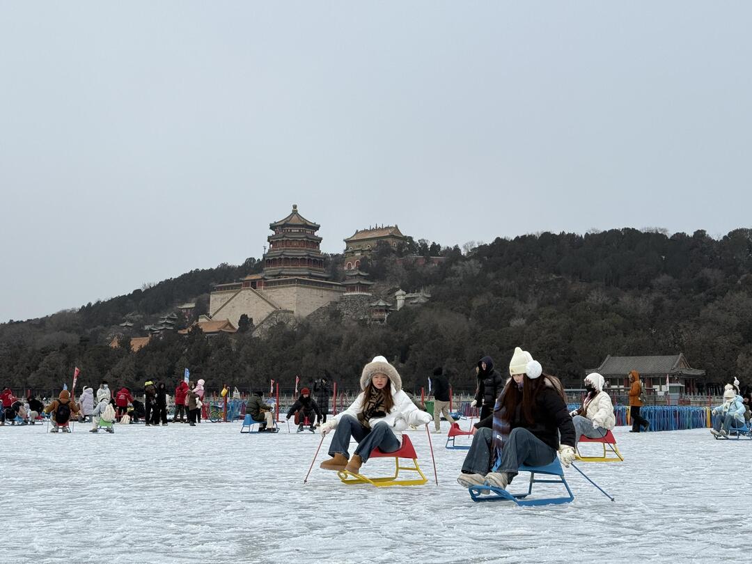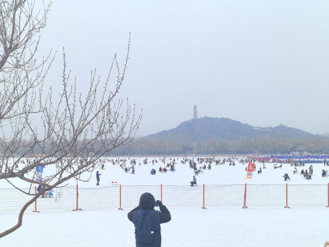 1月17日,京城降下瑞雪。颐和园昆明湖冰场正式向市民开放,色彩明快的冰车与冰自行车在冰面上往来穿梭,为静谧的古典园林增添了生机盎然的冬日活力。