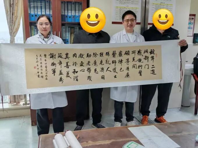心病科主任曹瑛双手捧着蒋老先生赠送的卷轴,深受感动:“这不仅仅是一份珍贵的礼物,更是一份沉甸甸的鞭策与激励。‘仁心’在前,‘仁术’在后,我们要始终将患者的利益放在首位,以仁爱之心去关怀每一位患者,用精湛的医术为他们解除病痛。”