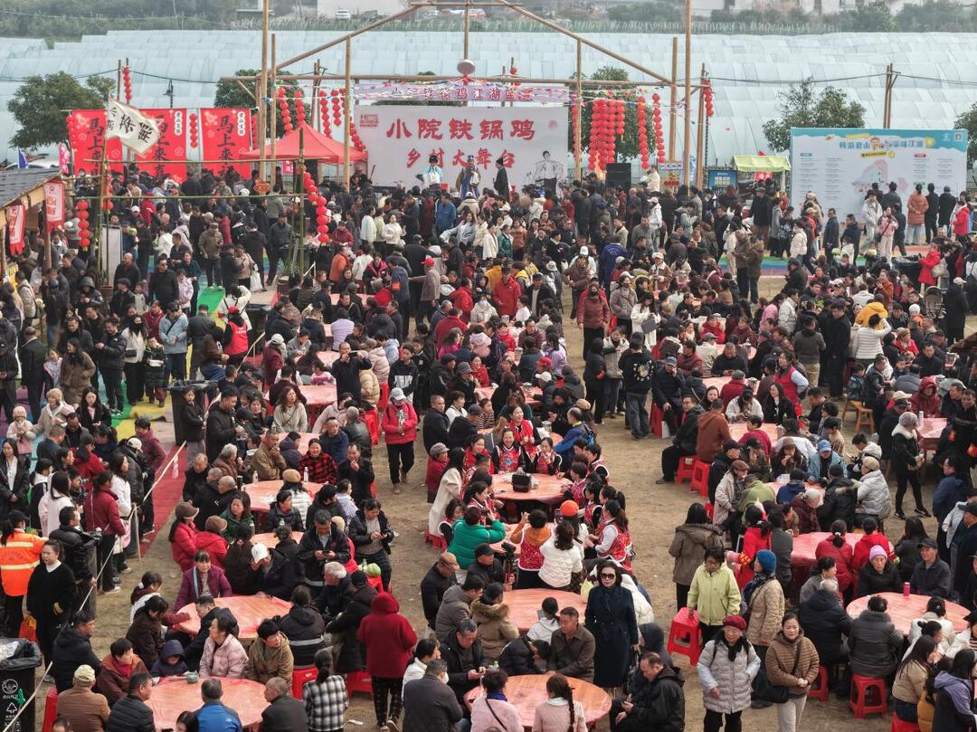 时至午后,阳光暖融融地洒满院落。席间依然人气不减,不少人边吃边聊,孩子嬉闹跑跳。舞台上的民歌演唱悠扬响起,为这场冬日里的盛宴添上几分温馨与惬意。