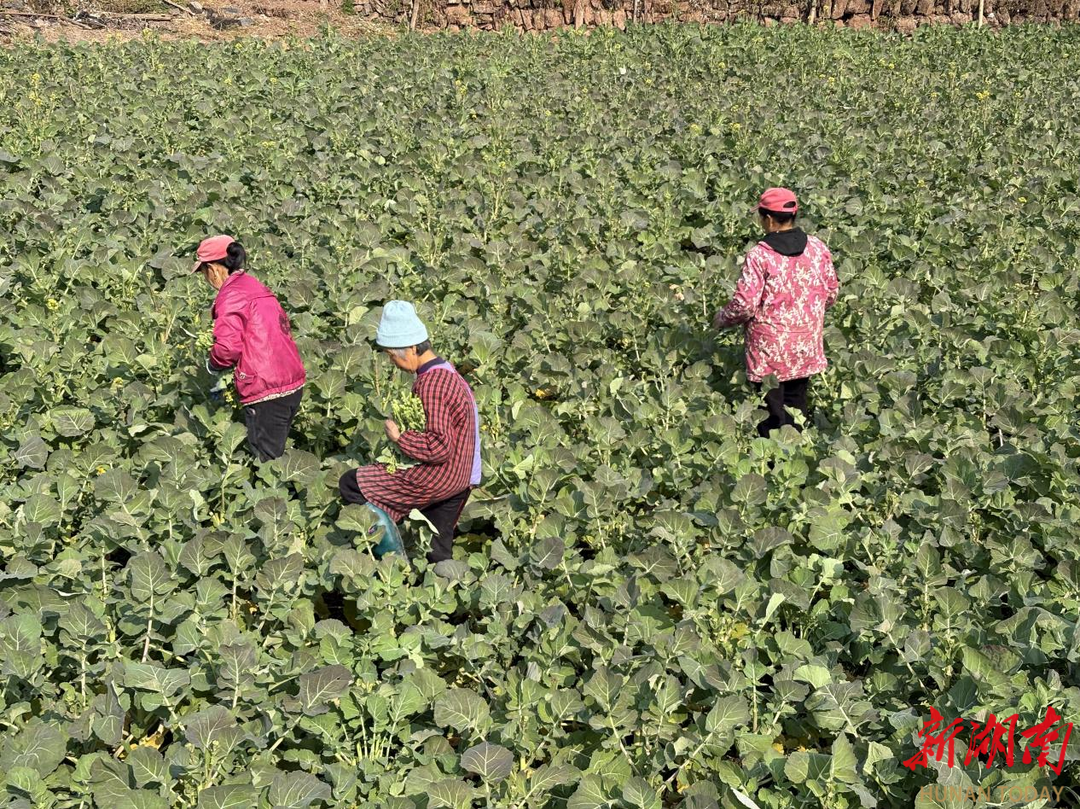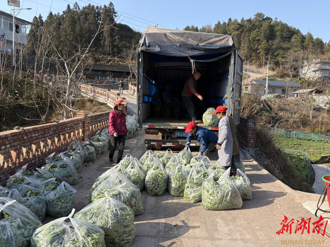 新湖南客户端1月17日讯(通讯员 张棋铭 杨昊天)近日,湘西土家族苗族自治州古丈县高峰镇三坪村的田间地头一派忙碌景象,村民们正小心翼翼地采收板蓝根菜薹。这种外形似油菜、口感清甜的新型蔬菜,即将搭乘物流快车,发往长沙、武汉等城市的大型连锁超市,成为城市居民“菜篮子”里的绿色新选择。