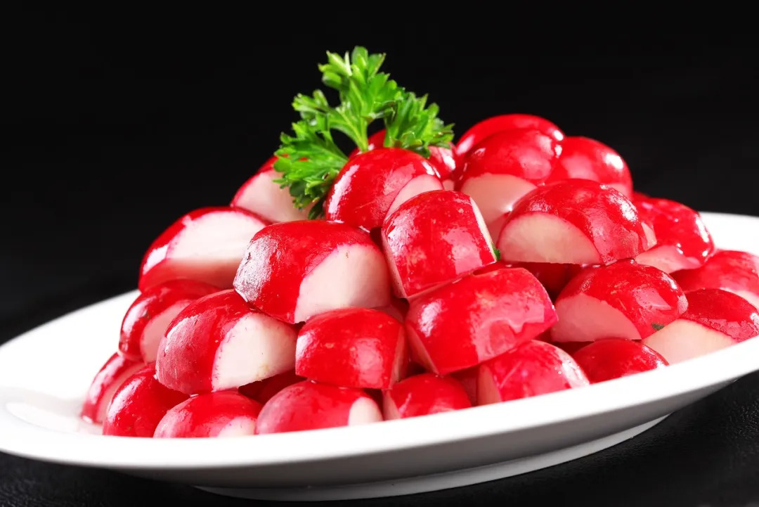 营养价值上虽然不太突出,但凭借红皮脆嫩、清新、微辣的口感,方便易得的优势,也成为餐桌上的百搭开胃小菜,尤其适合在沙拉、凉拌菜中点缀。