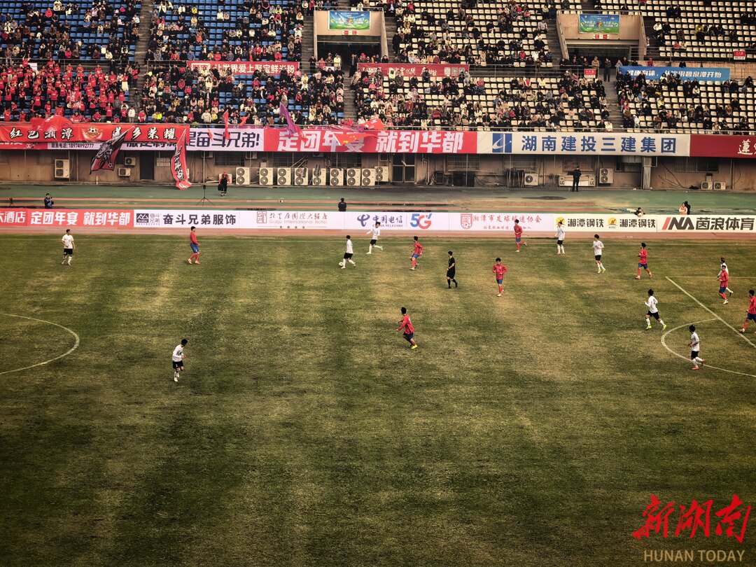 15时,比赛正式开始。湘潭市足球球迷协会足球队一开场后表现积极,试图通过中场组织与快速传递制造威胁,前15分钟与湘潭县队形成胶着态势。湘潭县队则稳扎稳打,凭借更娴熟的传控和整体阵型逐渐掌控比赛节奏。上半场中段,湘潭县足球队多次通过边路配合与定位球机会威胁对方球门,球迷协会队门将与后卫线协力化解了数次险情,力保球门不失。