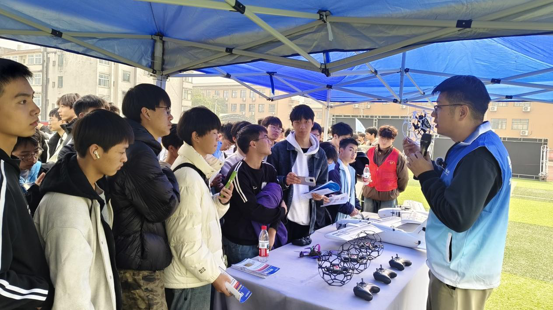 模拟飞行体验区:穿越机飞行展示,搭配专业讲解,让大家了解这项技术在赛事竞技、影视拍摄中的应用,不少同学表示“像在玩一场真实的空中赛车”;