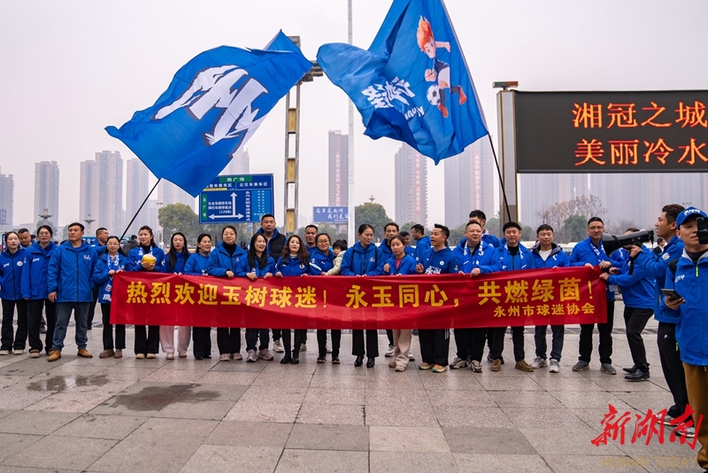 1月17日,永州站,永州球迷手持欢迎标语,迎接远道而来的青海玉树队。2026CMG群众足球邀请赛于1月18日在永州市体育场开幕,湖南、内蒙古、黑龙江、山东、广东、青海六省代表队齐聚,将在为期一周的赛程中展开九场精彩角逐。湖南日报全媒体记者 童臻熙 刘诗琪 摄影报道