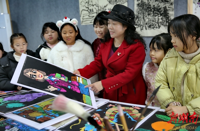 1月17日,常宁市洋泉镇乐元村美术馆,孩子们在老师指导下,用刻刀与画笔创作出一幅幅充满童真与想象的版画。他们将乡村的花草、动物等元素融入作品,展现乡土文化的独特魅力。郭兴成 摄(湖南图片库)