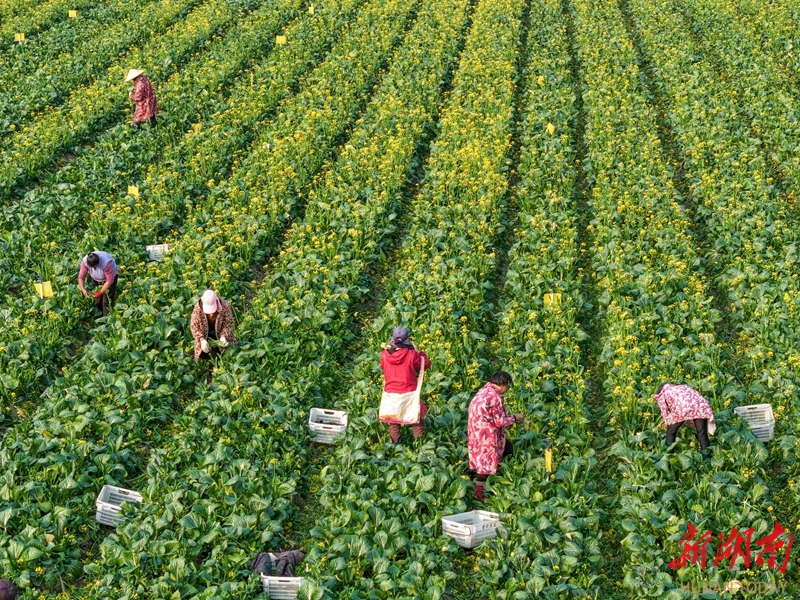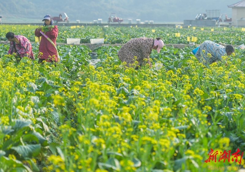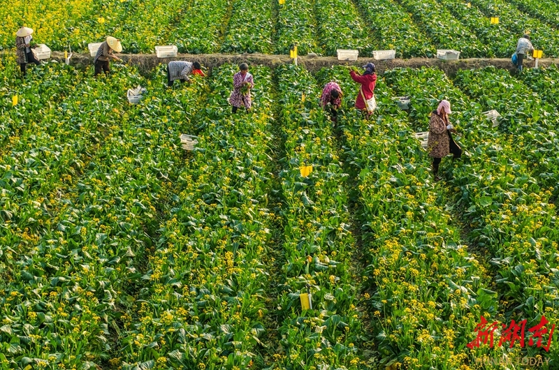 1月17日,道县原地正禾农场,菜农正忙着采收新鲜蔬菜。当前正值冬季蔬菜供应关键期,当地积极组织种植大户加快采收进度,全力保障市场“菜篮子”供应充足。蒋克青 摄(湖南图片库)