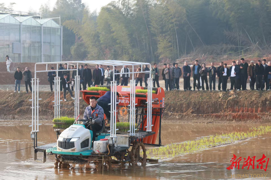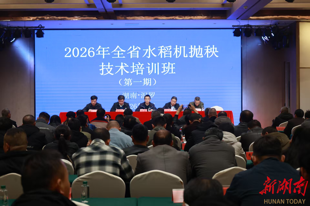 湖南日报•新湖南客户端1月17日讯(通讯员 夏凡 周小珺)1月15日上午,汨罗市罗江镇新生力农机专业合作社的稻田里,汨罗龙舟农机的新款抛秧机有序“吐”出一株株禾苗,为田间铺上“绿毯”。当天,由湖南省农业农村厅主办,汨罗市农业农村局、汨罗市农业综合技术推广中心承办的2026年全省水稻机抛秧技术培训班在汨罗开班。