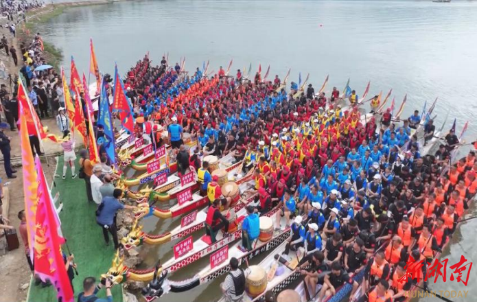 为黄阳司镇端午民俗文化活动的龙舟赛现场