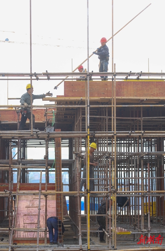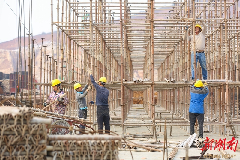 1月17日,工人在隆回县安全食品冷链物流智慧城项目施工现场紧张作业。该项目规划涵盖蔬菜、水果、粮油、副食、干货、冻品、水产等农产品全业态,实现物流仓储、冷链配送与集贸交易等多元功能的有机融合,是湖南省重点项目。项目建成后,将有效整合物流仓储、冷链配送与集贸交易功能,为该县农产品提供高效流通平台,显著提升区域农产品供应链效率,助力“农业富县”战略实施。曾勇 摄(湖南图片库)