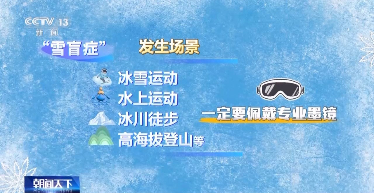 “雪盲症”不仅在冰雪运动中有可能发生,水上运动、冰川徒步、高海拔登山等情况下也要特别注意,一定要佩戴专业墨镜。