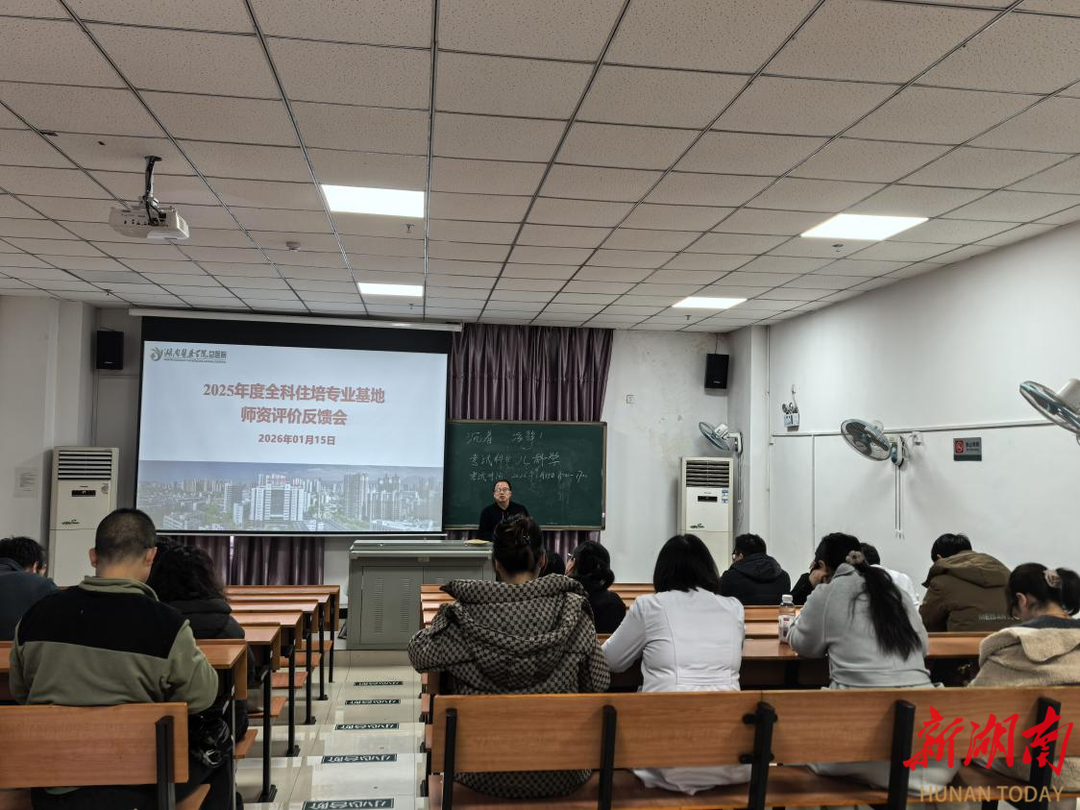1月15日,湖南医药学院总医院举行全科住培专业基地师资评价反馈会。本次反馈会涵盖内科、外科、妇产科、儿科、传染科及全科医学科等多个专业,共同回顾总结2025年度教学工作,展望新一年发展方向。全科专业基地主任黄渊旭主持会议,全科专业基地全体师资共计87人参加会议。