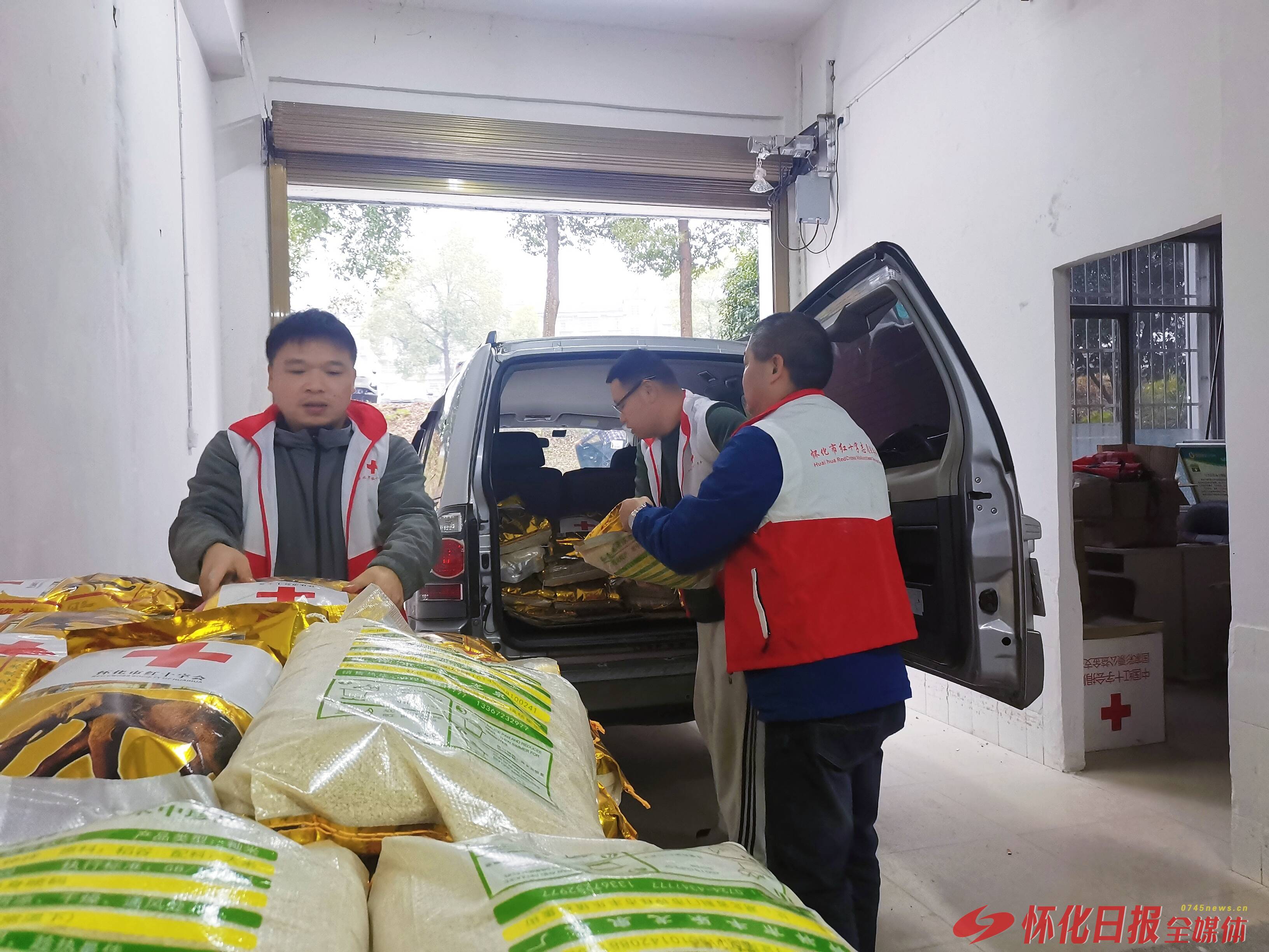 (1月15日,市红十字会工作人员向县市区红十字会分发“博爱送万家”物资。怀化日报全媒体记者 谌孙存 通讯员 孙小梅 摄)