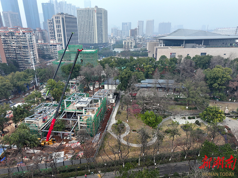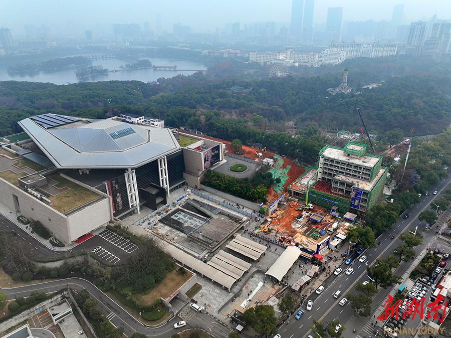 1月18日,全国首个“博物馆+公园”模式的湖南烈士公园西广场文旅项目(“馆园融合”工程)正有序推进。该项目去年6月启动,占地2.9万平方米,现已打通湖南省博物馆与烈士公园通道,新建建筑、广场铺设及绿化工程同步施工。本月底将完成融合广场建设,计划4月20日前全面竣工投用,实现文化与自然景观的无缝衔接。 湖南日报全媒体记者 赵持 摄