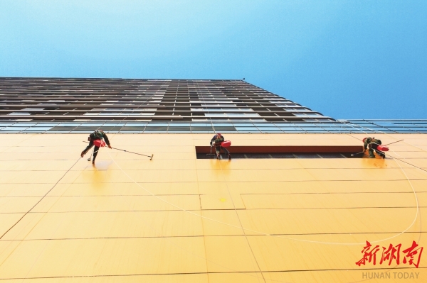 1月16日,湘西土家族苗族自治州吉首市,高空保洁工人借助专业绳索,对高楼大厦的玻璃幕墙进行清洁作业。这些悬于高空的作业人员如同蜘蛛侠,在擦亮城市建筑的同时,成为一道独特的风景线。