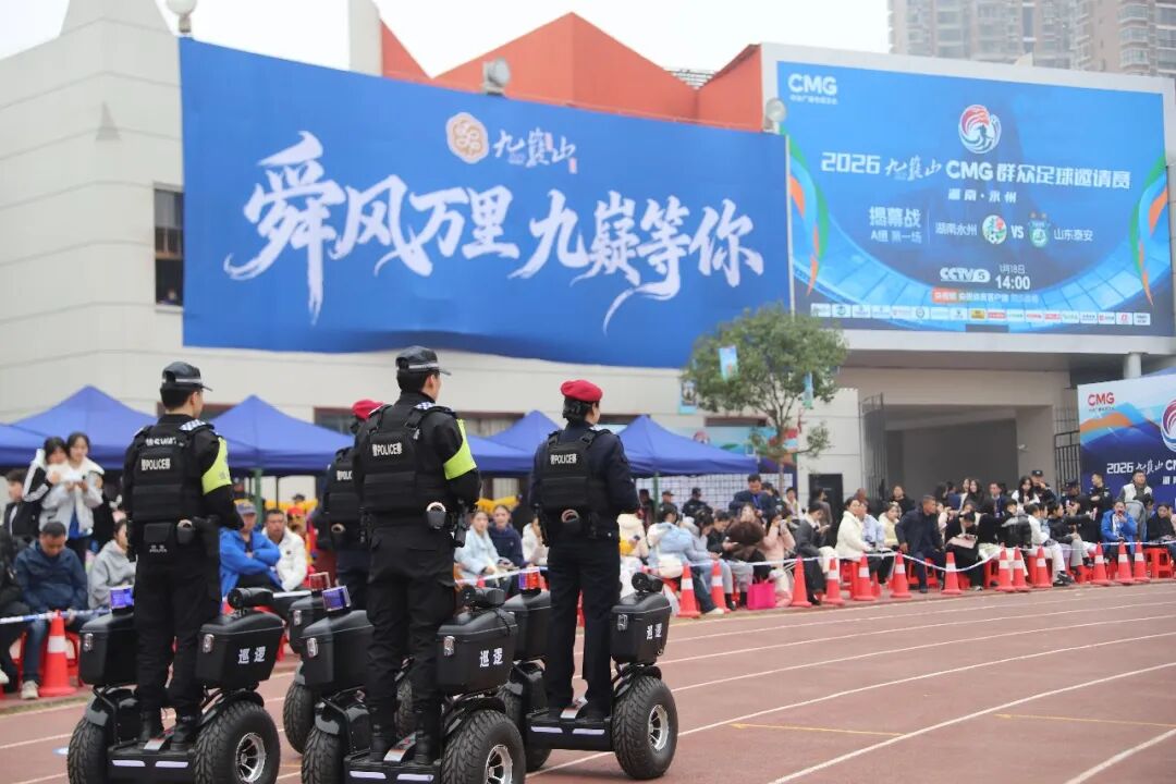 1月18日,由中央广播电视总台主办的2026CMG群众足球邀请赛在永州市体育场激情开赛。湖南永州队与山东泰安队为全国观众奉献了首场精彩对决,标志着这场为期7天、汇聚六省冠军的足球盛会正式启幕。球场内,球员拼抢、球迷呐喊,热情如火;球场外,永州公安的藏蓝身影全程守护、默默奉献,以最高标准、最实举措,确保了赛事安全、畅通、有序,让这场全国性的体育盛宴在冬日暖阳下平安绽放。