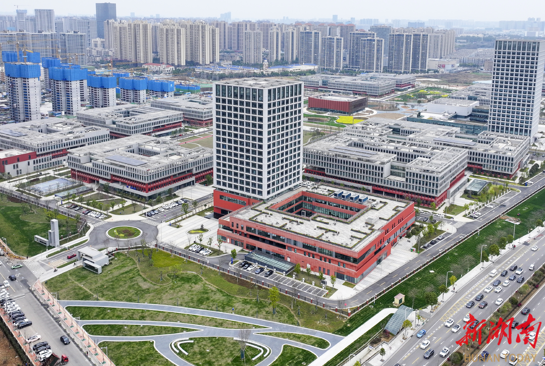从高空俯视,岳麓山实验室集聚区的17栋大楼如星辰落子,疏密有致地铺展于沃野之上。