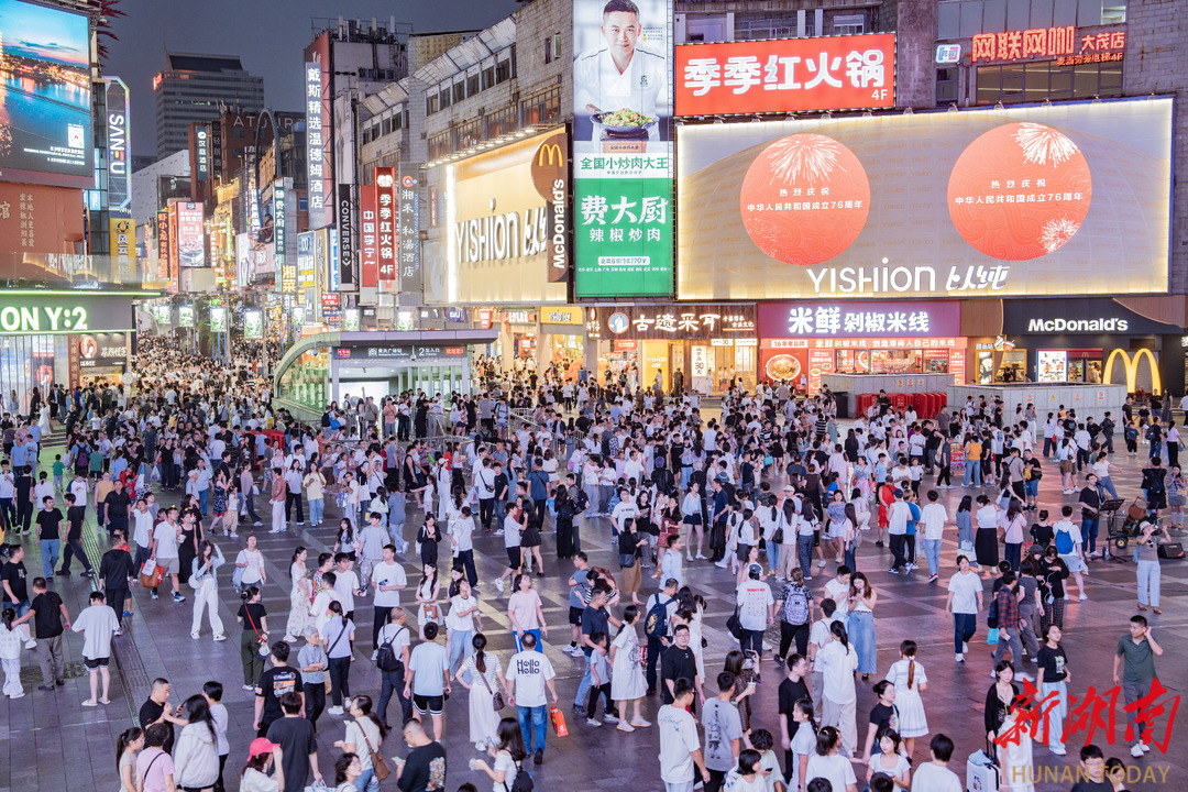 五一商圈游人如织。湖南日报全媒体记者 李健 摄