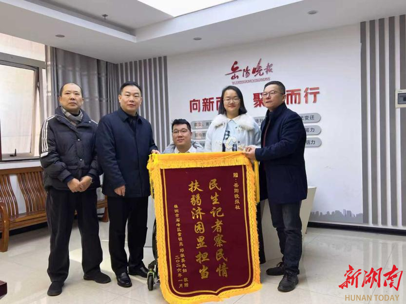 来自株洲的董明亮,坐着轮椅跨越192公里,将印着“民生记者察民情,扶弱济困显担当”锦旗,送到了即将退休的记者韩章手中,去年他帮助这对残疾夫妇对接惠残政策,顺利领取补助。