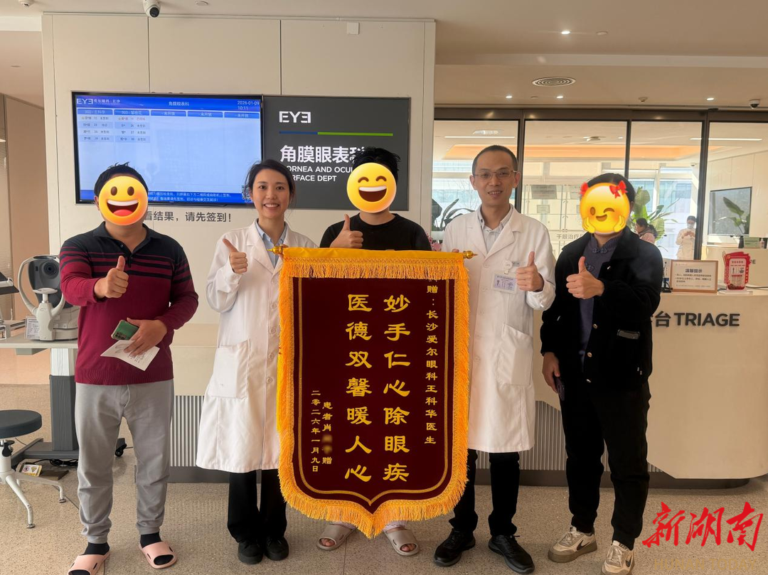 大众卫生报·新湖南客户端1月19日讯(通讯员 李倩)“是王科华主任,是爱尔眼科给了我第二次光明!”近日,河北某大学应届毕业生肖同学从长沙爱尔眼科医院康复出院,向主刀医生王科华主任送上“妙手仁心除眼疾,医德双馨暖人心”的锦旗。这场跨越2025—2026年元旦的紧急救援,不仅彰显了爱尔眼科的角膜移植技术实力,更让公益医疗的温暖照亮了困境学子的前行之路。
