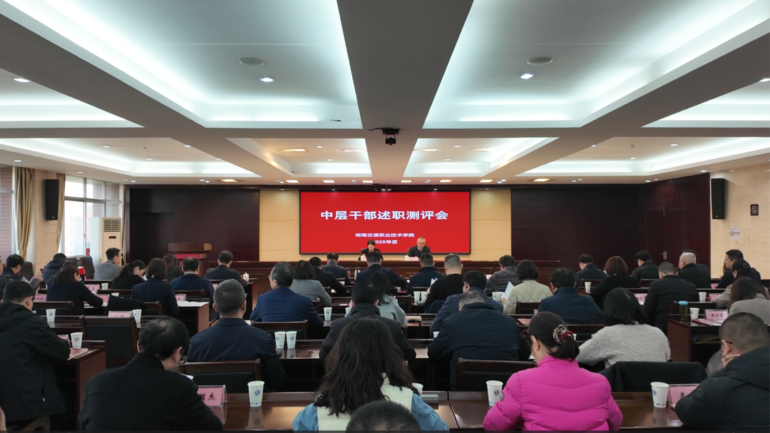 1月15日,湖南交通职业技术学院在行政办公楼B503会议室召开2025年度中层干部考核述职测评会。全体院领导及中层干部参加会议,党委副书记唐文主持会议。
